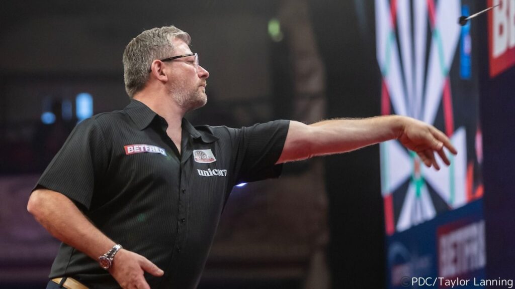 ジェイムズ・ウェイドは、現在 PDCオーダー・オブ・メリット(OOM)7位につけるトッププレイヤーであり、主要タイトル11勝、キャリア通算49勝、公式戦9ダーツ6回達成という圧倒的な実績を持つ。